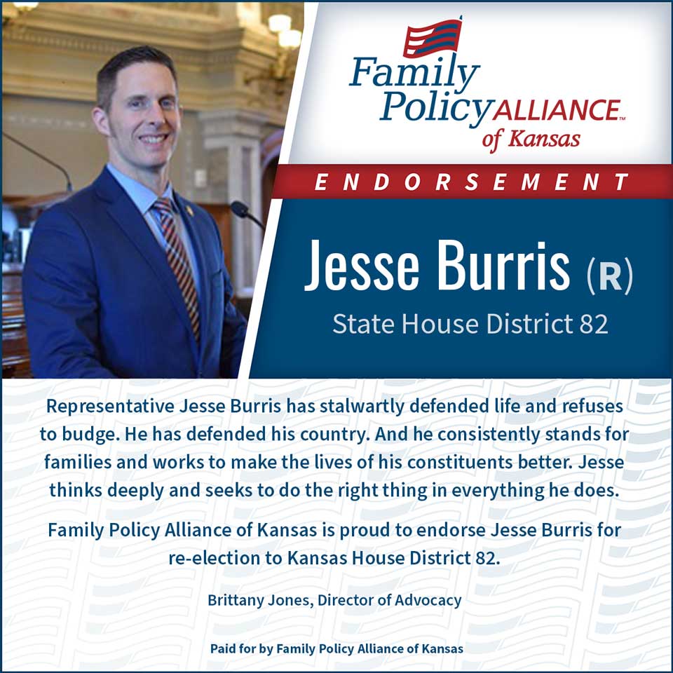 That is why Kansas Family Voice of Kansas is proud to endorse Jesse Burris for Kansas House District 82.