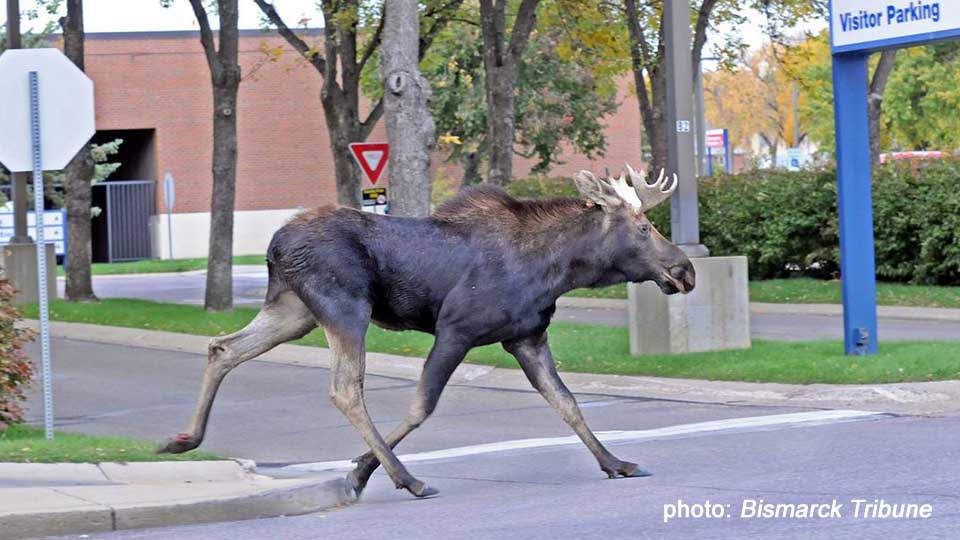 Back in October, I ran across this story: Moose wanders through Bismarck. It seems there was a moose wandering around Bismarck and it was enough to warrant coverage on the local news. I admit I would have been taken aback if I had encountered a moose in my lane on a local road.