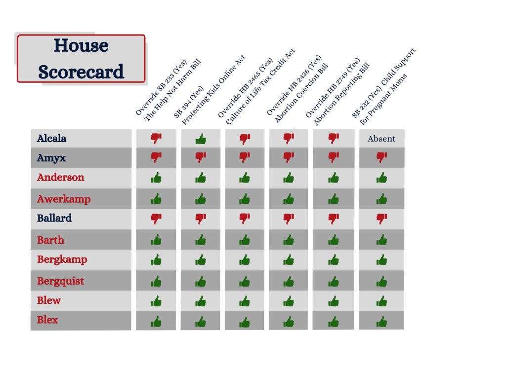 A green thumbs up indicates that this legislator voted in alignment with KFV