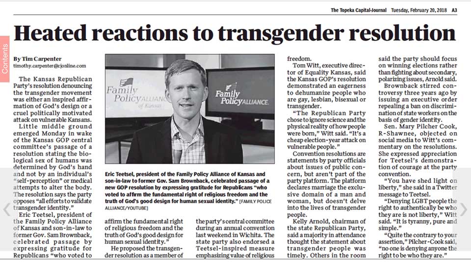 Local and national media responded swiftly. Articles appeared in all the major Kansas newspapers, U.S. News & World Report, The Blaze, The Daily Caller, Lifesite News, The Hill, Christian Post, several pro-LGBT outlets, and more. People standing for the truth in the face of prevailing cultural winds is worth reporting, it seems.
